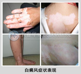 2、皮损颜色变白、典型的白癜风多呈指甲和钱币大小,近圆形、椭圆形或不规则形,可扩大或相融合为不规则的大片,形态不一,白斑周围着色加深的色素带和白斑中央有岛屿状的色素点。另一种典型症状是白斑沿神经分布成条状色素斑,边缘如刀切状整齐。