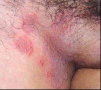 5、自身传染--即从自身其他部位真菌传染,男性股内侧与阴囊靠近,尤其肥胖者两处完全贴在一起,其上的分泌物、污垢等都不易清除,而且局部温度较高、潮湿,很适合真菌的生长繁殖。也由于接触患癣病人或自身手足癣,因搔抓蔓延而传染癣菌。