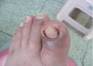 患者咨询:我因为有一次剪趾甲不小心剪得太深了,好像剪到肉里去了,后来穿鞋子的时候老是会把趾甲给挤到肉里去,时间一久发现趾甲的两侧有点发红、肿胀和疼痛的感觉,现在居然还出现了流脓,还有小肉芽可以看到,现在碰都不能碰,连穿鞋子都很困难,请问这是怎么回事呢,是不是感染了?