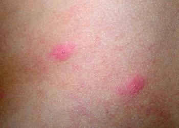 荨麻疹:发无定处的单纯性风团,时发时消,此起彼伏,大小不等,形态不一,消退后不留痕迹。