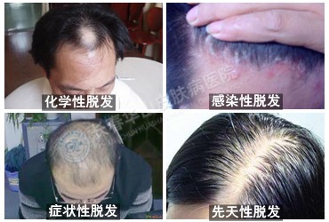 3、营养性脱发:毛发是身体状况的外在的表现,机体营养不良和新陈代谢异常可引起发质和发色的改变,严重营养不良甚至导致毛发弥漫性脱发。
