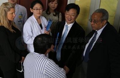 到院后,国际专家通过德国奥曼wood灯检查,抗黑素细胞抗体检测及血液检查,确诊伍伦的白癜风是由自身免疫力下降而引起,伍伦平时学习压力大,还有偏食厌食的毛病使白癜风一直得不到治愈。而且数据显示黑色素脱失的速度特别快,而且已经产生了抗药性治疗难度相对的加大许多,医生为伍伦制定了详细的诊疗方案,和日常饮食建议。同时国际专家还对伍伦进行心理辅助治疗,经过两个月疗程,他的白斑明显减少,脸颊形成新的黑色素岛并向周边扩散,10周的时候面部颜色逐渐接近正常的肤色。在进行7个疗程的治疗后,伍伦的白斑已经完全康复,白斑处已恢复正常皮肤,出院时,他和父母不停的道谢。在后期的跟踪复查中得知,伍伦眉毛和眼角的白斑无复发迹象,而且伍伦的性格也变得越来越开朗。